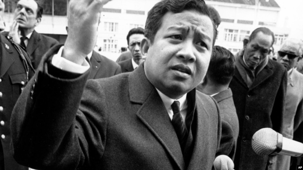 Prince Norodom Sihanouk, the Cambodian head of state, makes a speech at Orly National Airport located south of Paris, France on March 13, 1970. Sihanouk is returning to Phnom Pehn via Moscow and Peking. (Levy | AP)