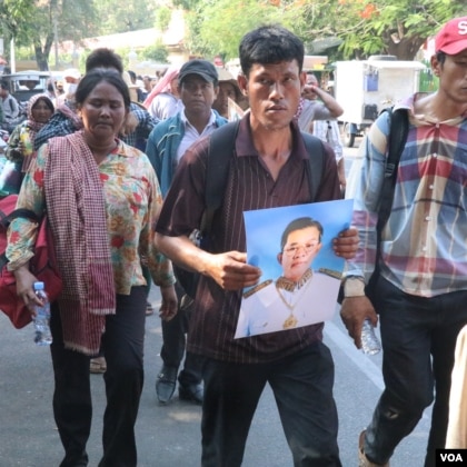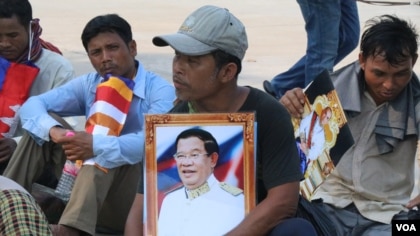 Villagers from Kratie province gathered in the country's capital seeking help from Prime Minister Hun Sen over a land dispute case with a rubber plantation company, Phnom Penh, Cambodia, April 23, 2018. (Sun Narin | VOA Khmer)