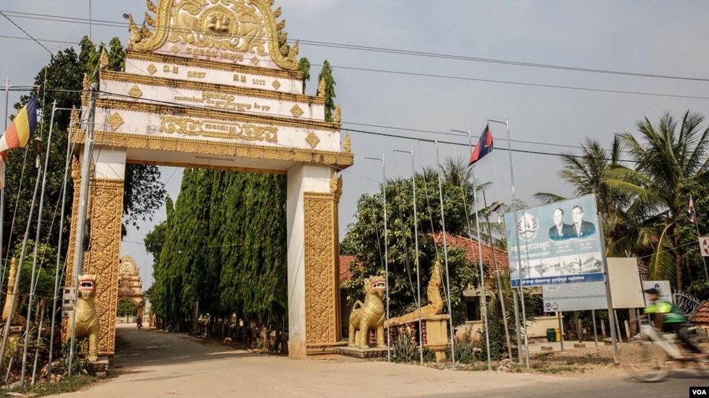 បដា​គណបក្ស​ប្រជាជនកម្ពុជានៅក្បែរ​ខ្លោង​ទ្វារ​វត្ត​បទុម កេស្សរ ​នៅ​ក្នុង​ឃុំ​ពាម​កោះស្នា ដែលជា​ស្រុក​កំណើត​របស់​លោក​នាយករដ្ឋ​មន្ត្រី ហ៊ុន សែន នៅ​ខេត្តកំពង់ចាម។ (អូន ឆេងប៉រ | VOA Khmer)
