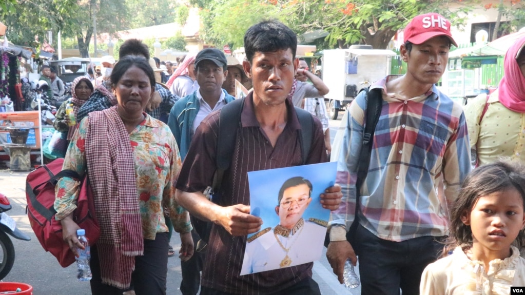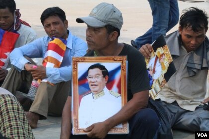 រូបឯកសារ៖ ប្រជាពលរដ្ឋមានជម្លោះដីធ្លីនៅខេត្តក្រចេះ តវ៉ានៅរាជធានីភ្នំពេញ កាលពីខែមេសា ដោយស្នើសុំការអន្តរាគមន៍ពីលោកនាយករដ្ឋមន្រ្តី ហ៊ុន សែន។ (ស៊ុន ណារិន | VOA Khmer)