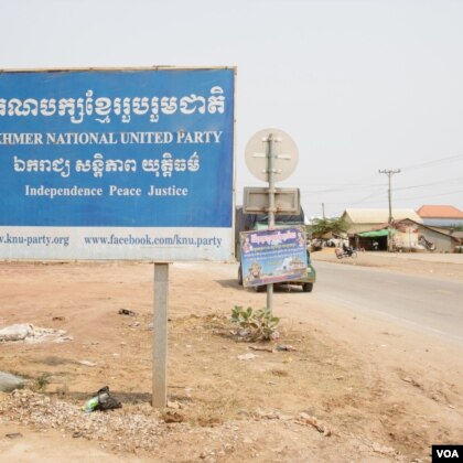បដាគណបក្សខ្មែររួបរួមជាតិ នៅតាមដងផ្លូវជាតិកាត់ឃ្មុំថ្មពួក ដែលពលរដ្ឋភាគច្រើននៅទីនេះគាំទ្រគណបក្សតូចនេះ ជាជាងគណបក្សកាន់អំណាចរបស់លោកនាយករដ្ឋមន្ត្រី ហ៊ុន សែន។ (ខាន់ សុគុំមនោ | VOA Khmer)