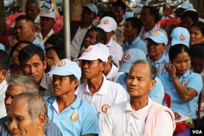 សមាជិកក្រុមប្រឹក្សាឃុំសង្កាត់របស់គណបក្សប្រជាជនកម្ពុជាចូលរួមការប្រជុំជាមួយលោក សុខ ឥសាន អ្នកនាំពាក្យគណបក្សប្រជាជនកម្ពុជា និងជាបេក្ខជនបោះឆ្នោតព្រឹទ្ធសភា។ (ស៊ុន ណារិន | VOA)